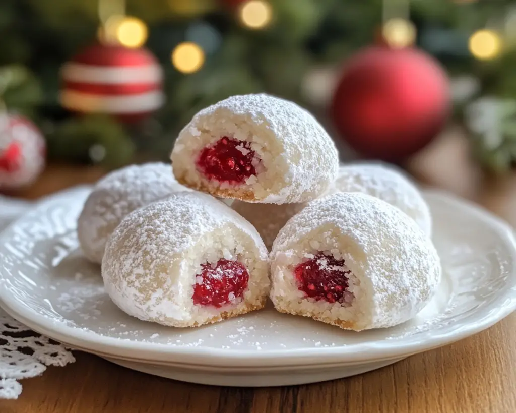 Raspberry Filled Almond Snowball Cookies – Easy Christmas Recipe