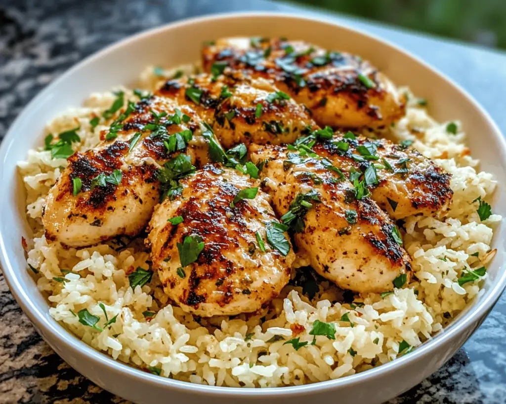 6. **Serve it Up**: To serve, plate the Parmesan rice, place the garlic butter chicken right on top, and drizzle with the garlic butter sauce left in the skillet. Garnish with more parsley if you like; it makes for a pretty presentation!