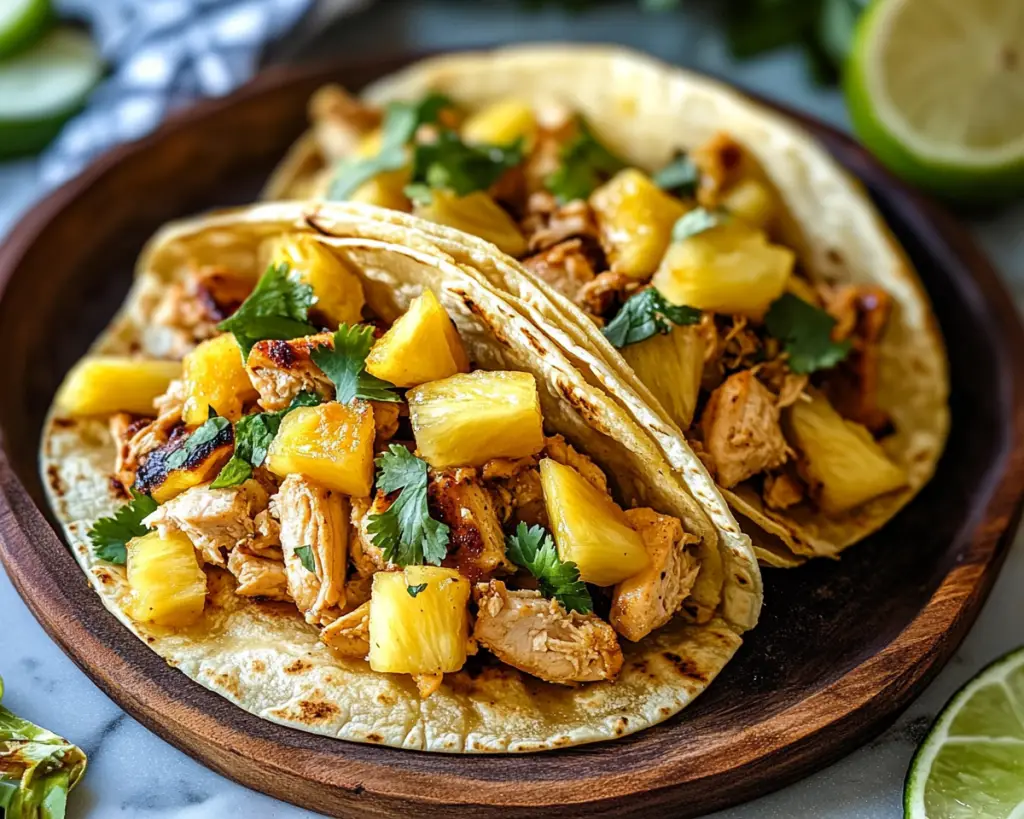 The combination of textures in these tacos creates a delightful experience: the tender chicken, juicy pineapple, and the crunch of fresh toppings wrapped in a soft tortilla make each bite a satisfying treat. It’s a comforting dish that serves as the perfect canvas for various toppings and sauces, allowing you to personalize them to your taste.